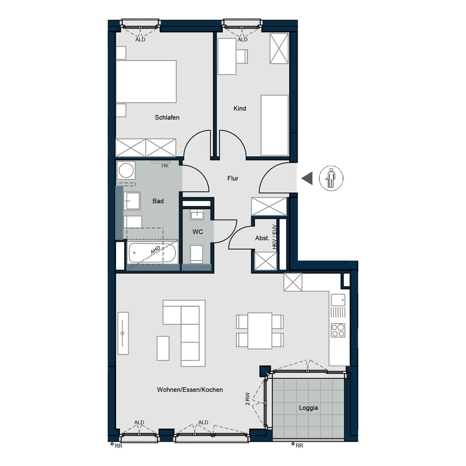 3-Zimmer-Wohnung mit großem Wohnbereich und integrierter Loggia