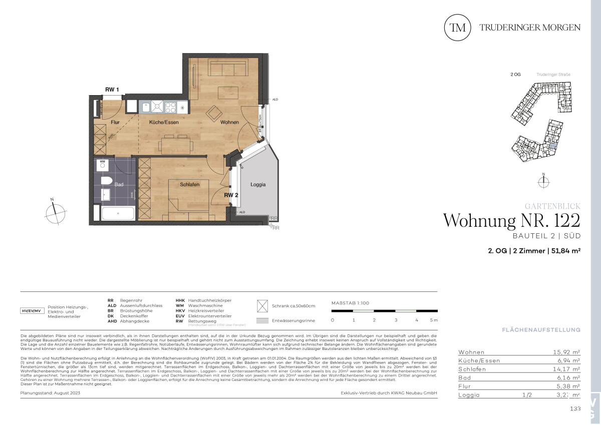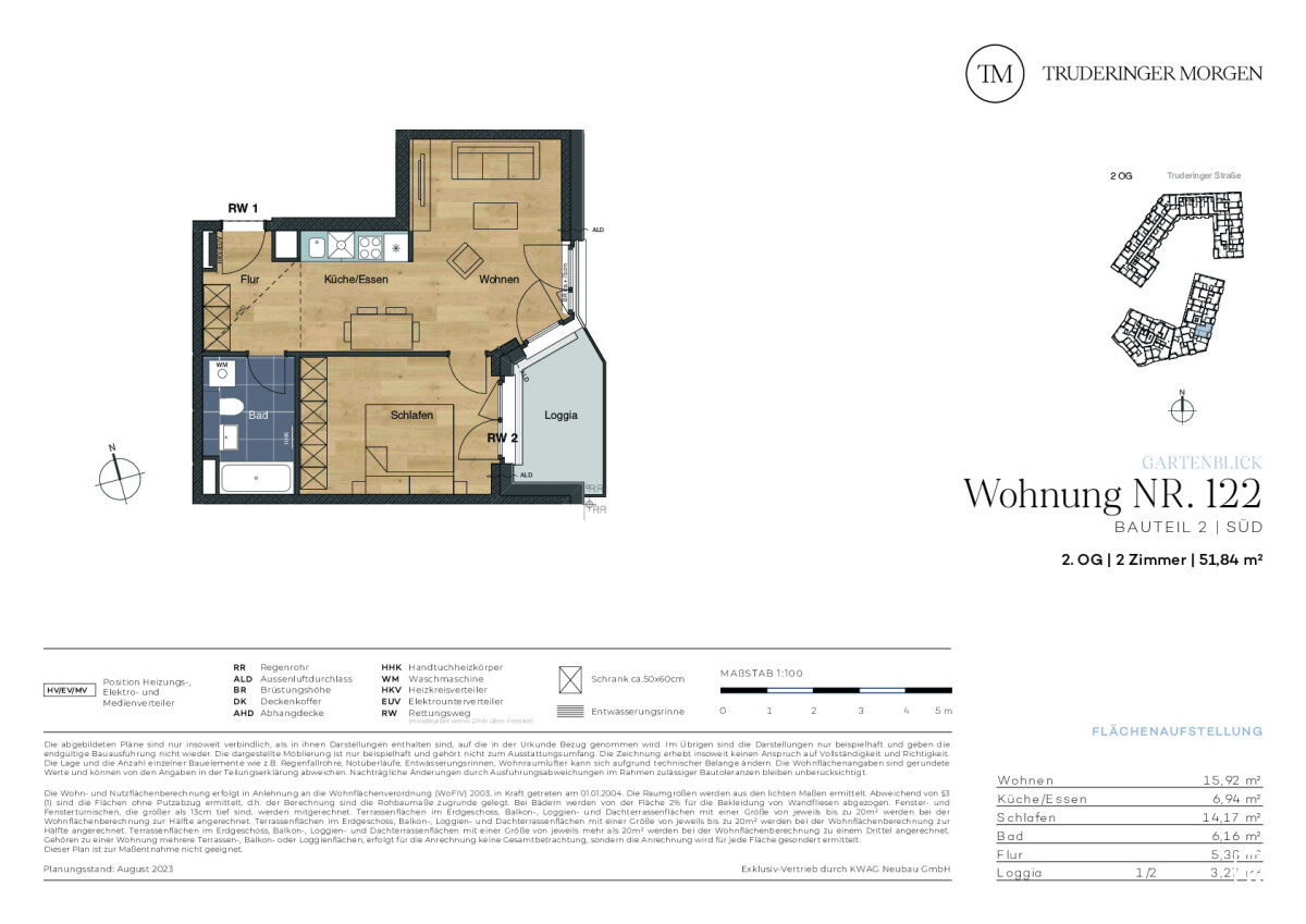 Sie suchen ein stilvolles Zuhause, das urbanes Ambiente und die Natur verbindet? Diese moderne 2-Zimmer-Wohnung mit Ostausrichtung befindet sich im 2. OG des neuen, attraktiven Wohnquartiers, dem "Truderinger Morgen". In diesem schönen Objekt erwartet Sie auf ca. 51,84 m² modernster Wohnkomfort. Auf der Loggia können Sie Ihre Ruhe-Oase gestalten und den Feierabend genießen. Diese erreichen Sie vom Wohn- und Essbereich sowie über das Schlafzimmer. Der Flur bietet genügend Platz für Einbauschränke oder eine große Garderobe. Vom Flur aus gelangen Sie in das moderne Badezimmer mit Badewanne, Handtuchheizkörper, Waschmaschinenanschluss, großen Fliesen und Marken-Sanitärausstattung. Das Echtholzparkett in den Wohnräumen sorgt für Gemütlichkeit und ein angenehmes Klima. Fußbodenheizung und elektrische Rollläden sind in allen Wohneinheiten vorhanden. Alle Wohnungen sind zudem durch Aufzüge von der Tiefgarage aus barrierefrei zugänglich um höchsten Wohnkomfort bis ins hohe Alter zu genießen.