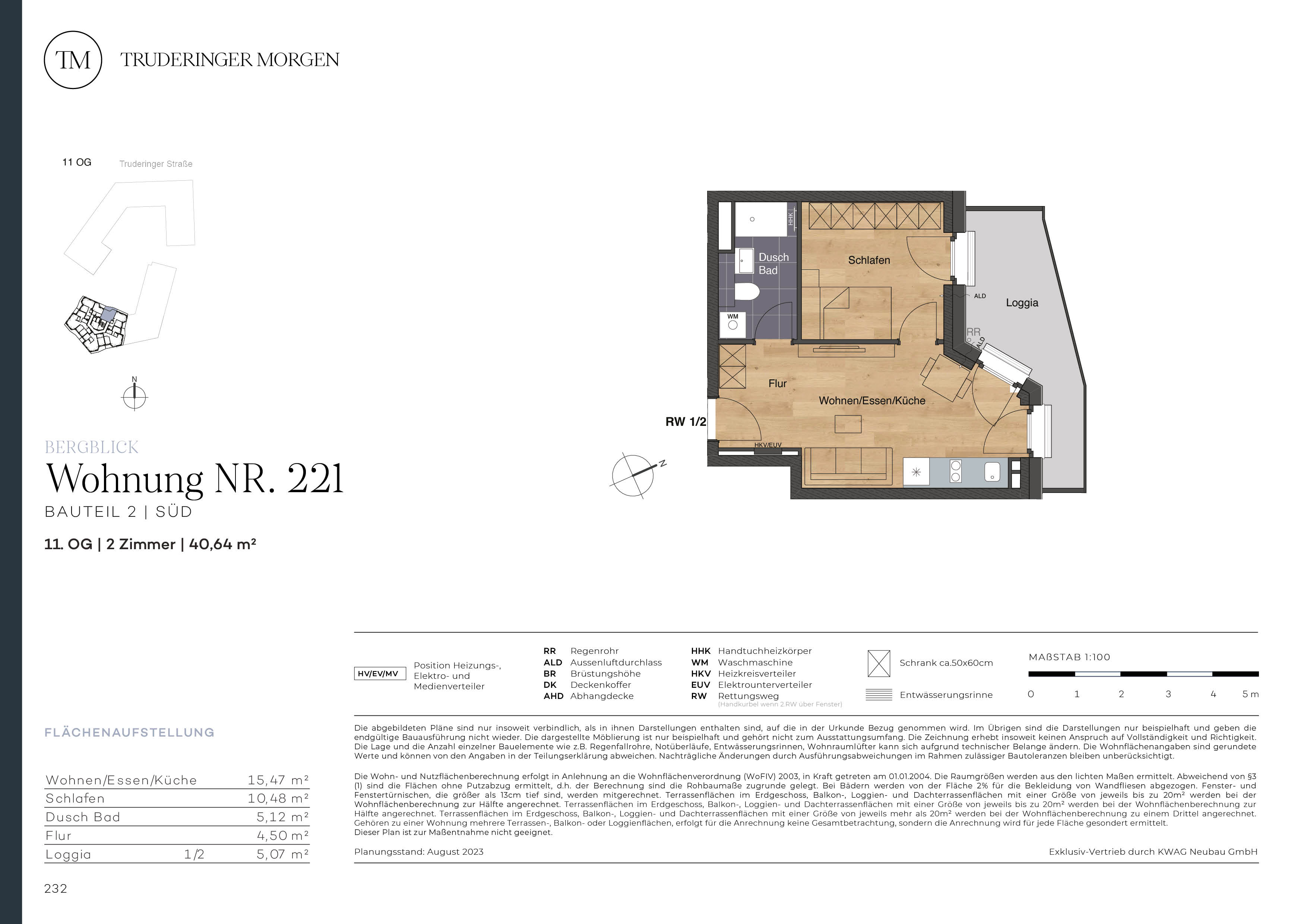 Die 2-Zimmer-Neubauwohnung befindet im 11. OG des Truderinger Morgen, im Bereich Bergblick. In diesem schönen Objekt erwartet Sie ca. 40,64 m² Wohlfühlambiente. Die 2-Zimmer-Wohnung ist auch gut als Kapitalanlage geeignet. Der Flur bietet Platz für Einbauschränke und führt in den offenen Wohn- und Essbereich. Dieser bietet zwei Zugänge zur anschließenden Loggia. Auch das Schlafzimmer verfügt über einen Austritt auf die schöne Loggia, welche sogar bei schlechtem Wetter die Möglichkeit bietet, frische Luft zu genießen. Im Duschbad erwarten Sie eine bodengleiche Dusche, ein Handtuchheizkörper, Markenausstattung sowie großformatige Fliesen. Bei der Materialauswahl des Objekts wurde besonderer Wert auf Nachhaltigkeit gelegt. Die moderne Wohnung begeistert mit elektrischen Rollläden und Fußbodenheizung. Gestalten Sie Ihr neues Heim im prosperierenden Münchener Osten mit perfekter Verkehrsanbindung und optimaler Infrastruktur für Arbeitsalltag und Freizeitgestaltung. Ergänzt wird der hohe Wohnkomfort mit ressourcenschonenden Technologien wie Photovoltaik und Mieterstrommodell.OBJEKT