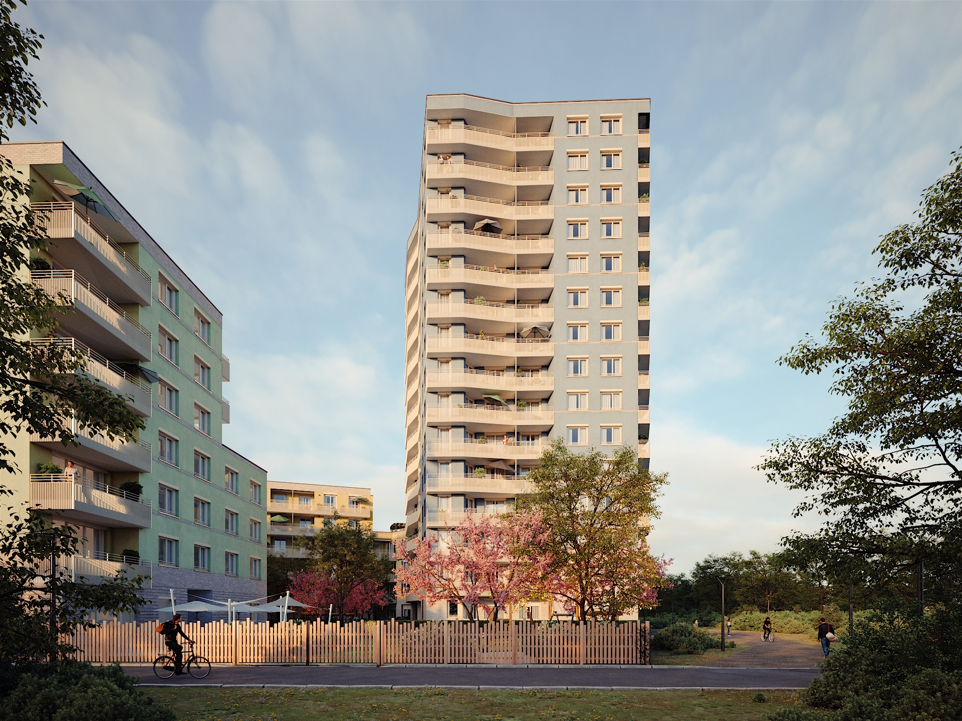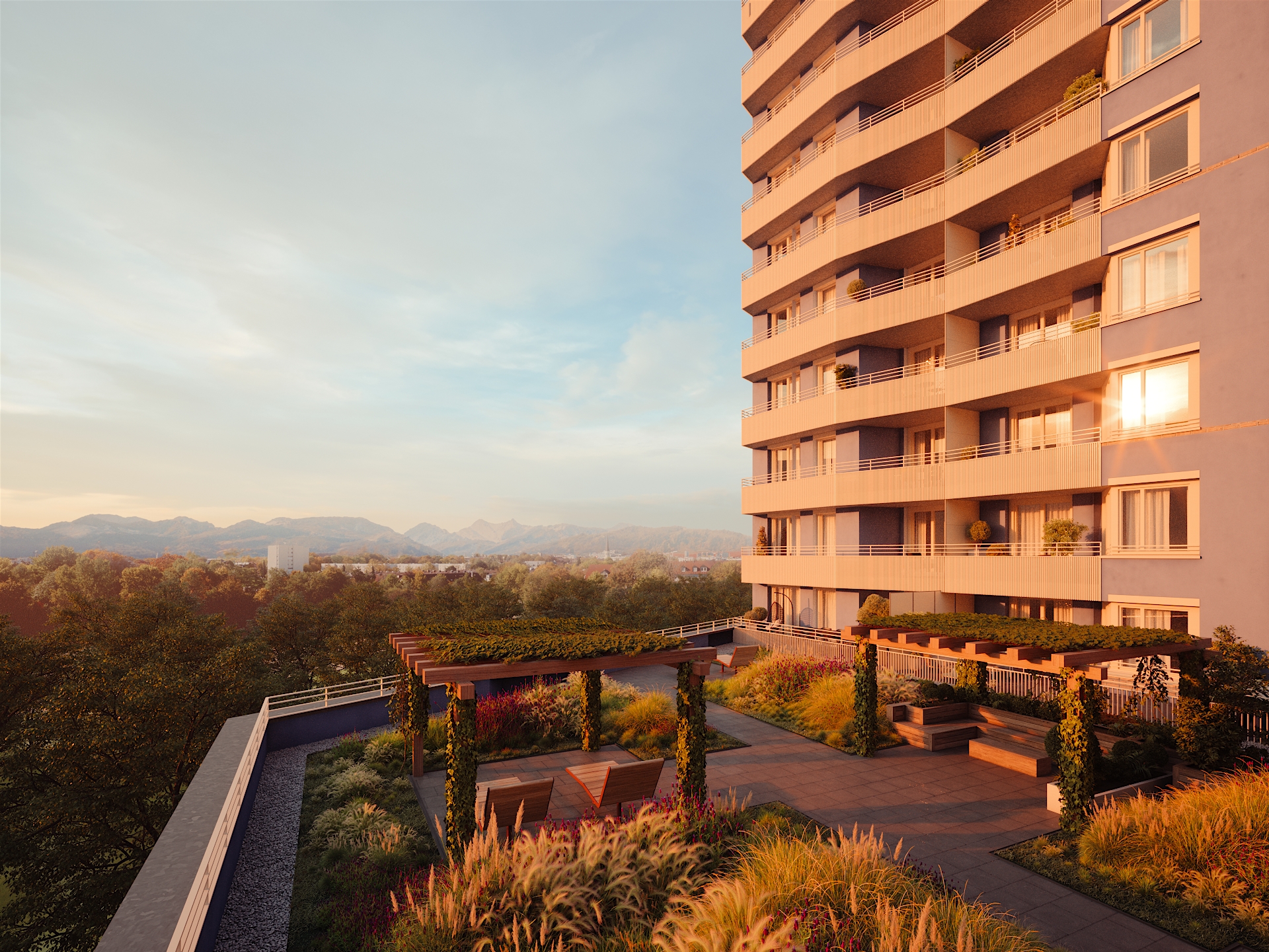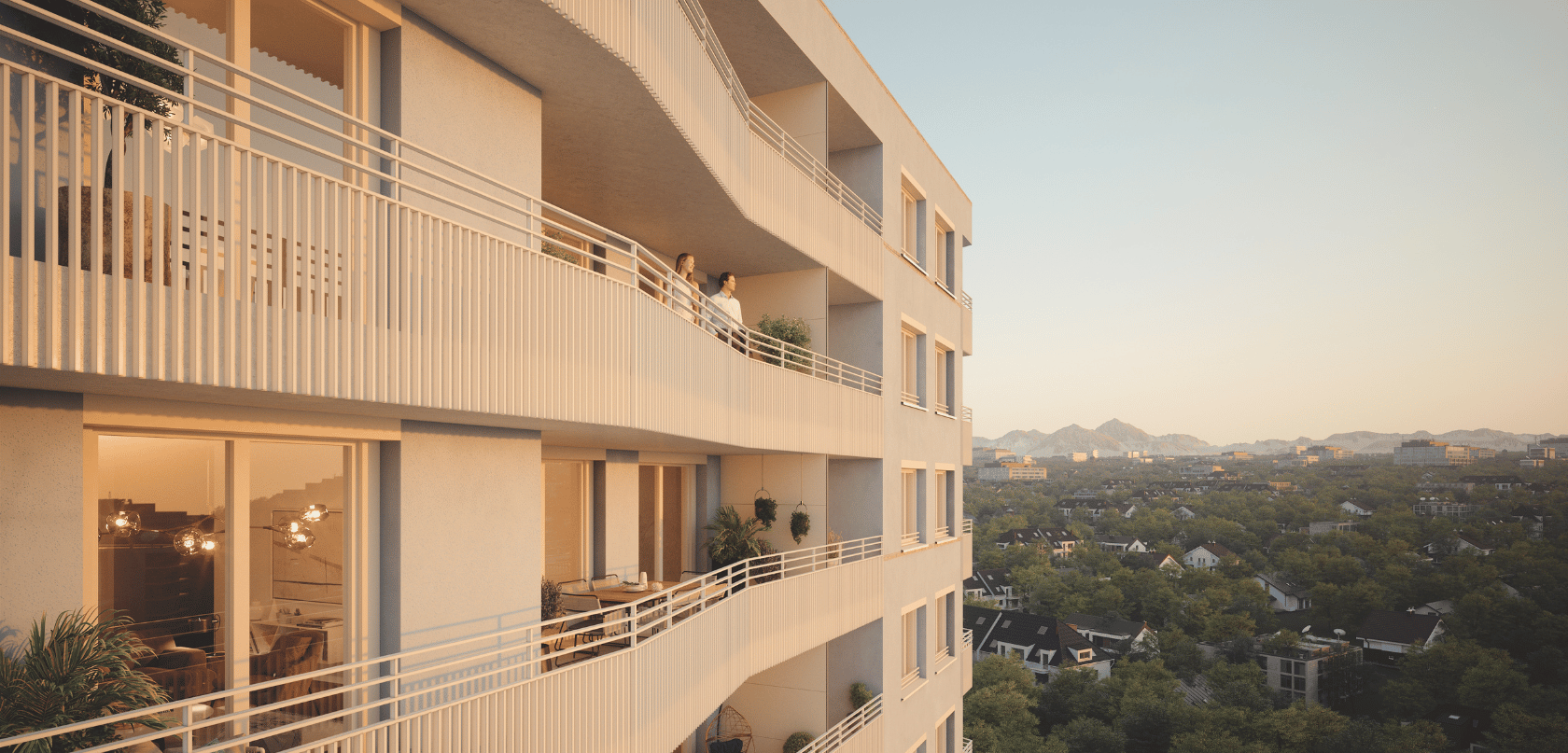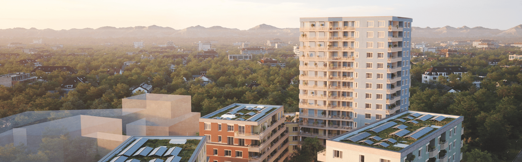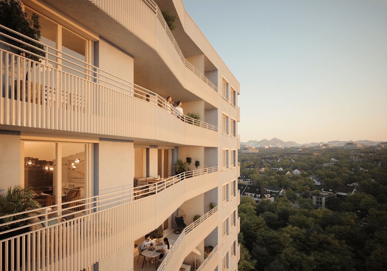 Das Neubauprojekt Truderinger Morgen ist Ihr Zuhause für Morgen. Zentral gelegen, im florierenden Münchner Osten – zwischen den Stadtteilen Berg am Laim und Trudering – entsteht ein eindrucksvolles Quartier mit hochwertigen Eigentumswohnungen. Beeindruckend ist auch die abwechslungsreiche Gestaltung der Gebäude mit unterschiedlichen Höhen von vier bis sechs Stockwerken und einem imposanten 15-stöckigen Turm.Die Einheiten im Truderinger Morgen sind horizontal in Gartenblick, Stadtblick und Bergblick unterteilt und nehmen dabei unterschiedliche Höhen und Sichtachsen ein. Die Bewohner erwarten somit einzigartige Perspektiven, die es so kein zweites Mal gibt.