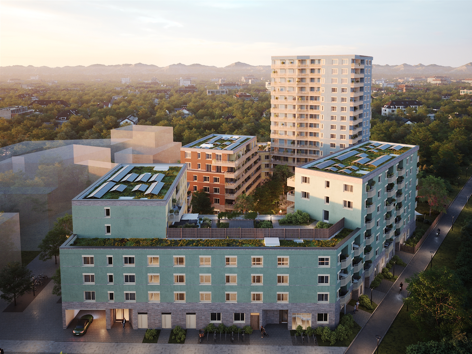 Die Stadt München verbindet kulturelle und gesellschaftliche Vielfalt, gilt als Innovations- und Hightech-Standort und beherbergt einige der schönsten Sehenswürdigkeiten und Attraktionen Europas. Nur ein Blick vom Dach des Truderinger Morgen genügt, um sich gleichzeitig an Münchens schönsten Wahrzeichen und dem unvergleichlichen Panorama der Alpen zu erfreuen. Sie befinden sich in unmittelbarer Nähe zu dem renaturierten Hachinger Bach, liebevoll angelegten Grünanlagen, Dachgärten, Wiesenflächen und dem begrünten Innenhof – ideal für die ruhigen Momente zwischendurch.