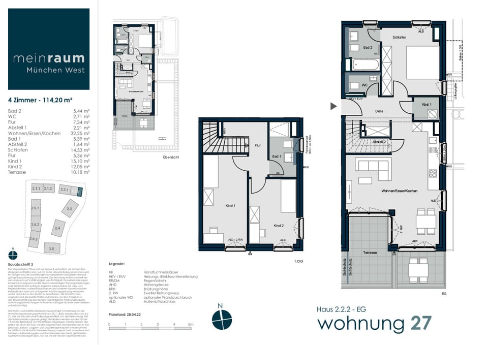 Sie suchen ein stilvolles Zuhause, das urbanes Ambiente mit ländlicher Freiheit verbindet? Diese charmante und großzügige 4-Zimmer Maisonettewohnung befindet sich im Erdgeschoss einer neuen, attraktiven Wohnanlage. In diesem schönen Objekt erwartet Sie 114,2m² modernster Wohnkomfort. Im Aussenbereich lädt die schöne Terrasse zum Verweilen ein. Elegante Landhaus-Dielen in Eiche bedecken die Böden in allen Wohnräumen, während großformatige Feinsteinzeug-Fliesen und Markenarmaturen den Stil der Bäder prägen. Fußbodenheizung und elektrische Rollläden sind in allen Wohneinheiten von 30 bis 130 m2 vorhanden. Alle Wohnungen sind zudem durch Aufzüge barrierefrei zugänglich um höchsten Wohnkomfort bis ins hohe Alter zu genießen.