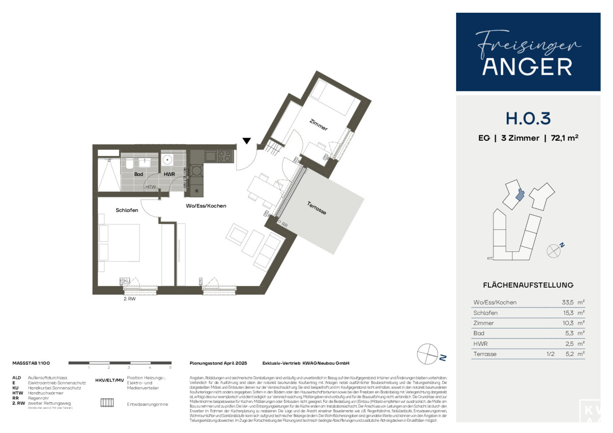 Diese moderne Erdgeschosswohnung mit 3 Zimmern und ca. 72,1 m² Wohnfläche befindet sich im Freisinger Anger. Durchdacht geplant, hochwertig ausgestattet - und das Beste: Ihre eigene Terrasse mit Gartenanteil ist direkt vom Wohnbereich zugänglich.Schon beim Betreten spürt man, wie gut Licht und Raum hier zusammenspielen. Der offene Wohn-, Ess- und Kochbereich empfängt Sie mit einem freien Blick zur großen Fensterfront Richtung Garten - viel Tageslicht, viel Luft, viel Ruhe. Das Herzstück der Wohnung liegt damit genau da, wo es hingehört: im Zentrum des Lebens.