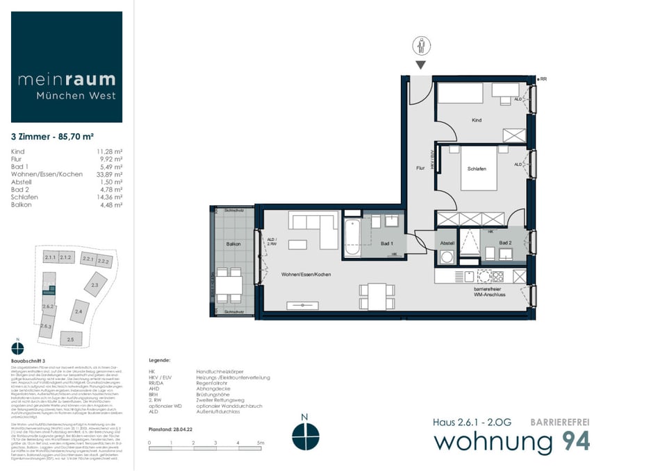 Sie suchen eine Eigentumswohnung im aufstrebenden Stadtteil des Münchner Westen? Möchten Sie ein urbanes Zuhause finden, von dem aus Sie dennoch kurze Wege zu den umliegenden Naherholungsgebieten haben? Dann haben wir das passene Zuhause für Sie. Die geräumige 3-Zimmer-Wohnung mit West Balkon im 2. OG einer stilvollen Wohnanlage wird Sie begeistern. In diesem schönen Objekt erwartet Sie 85,7m² modernster Wohnkomfort. Ausgestattet mit einem Tiefgaragenstellplatz inkl. E-Ladestation, grossformatigen Feinsteinzeug-Fliesen und Markenarmaturen, bietet diese Egeintumswohnung hochwertiger Wohnkomfort. Auf dem gemütlichen Balkon können Sie Ihre Ruhe-Oase gestalten und den Feierabend geniessen.