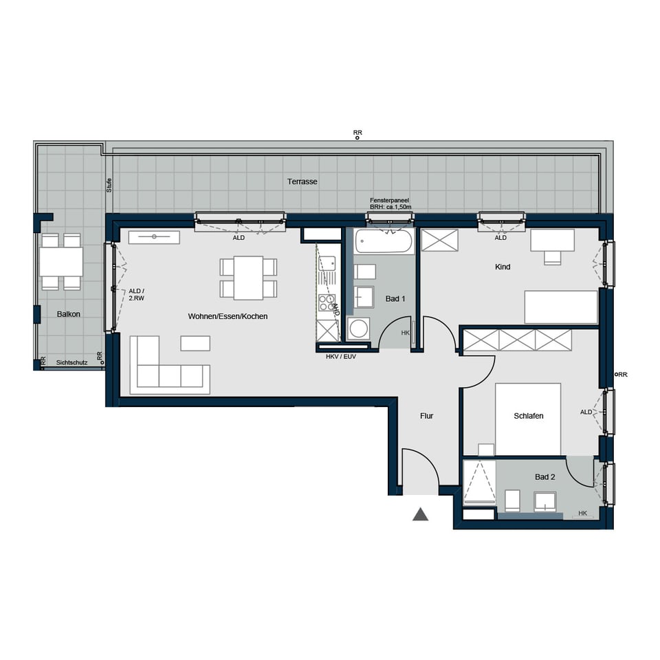Große 3-Zimmer-Neubauwohnung mit Terrasse und Balkon