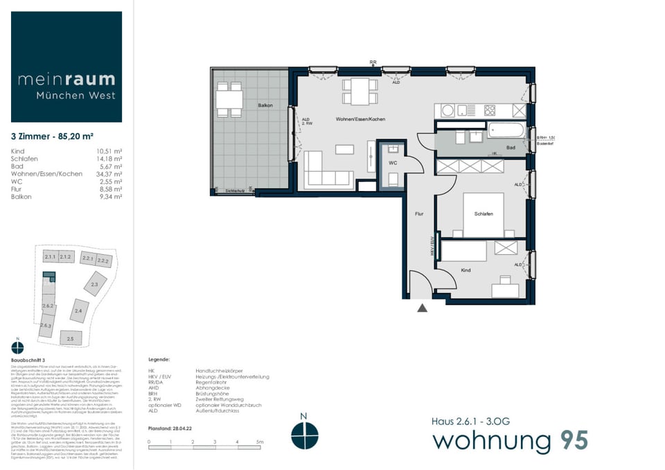 Suchen Sie ein Heim mit modernem Ambiente oder ein kleines Wohlfühlparadies mit lichtdurchfluteten Zimmern? Die stilvollen Eigentumswohnungen im Stadtquartier meinraum München West warten geradezu darauf, dass ihnen anspruchsvolle Bewohner Leben einhauchen. Diese lichtdurchflutete 3-Zimmer-Wohnung mit Süd-West Balkon befindet sich im 3. OG einer neuen, attraktiven Wohnanlage. In diesem schönen Objekt erwartet Sie 85,2m² modernster Wohnkomfort. Mit eleganten Landhaus-Dielen in sämtlichen Wohnbereichen und großformatigen Feinsteinzeug-Fliesen zur Fußbodenheizung werden Wohnträume wahr. Auf dem gemütlichen Balkon können Sie Ihre Ruhe-Oase gestalten und den Feierabend geniessen.