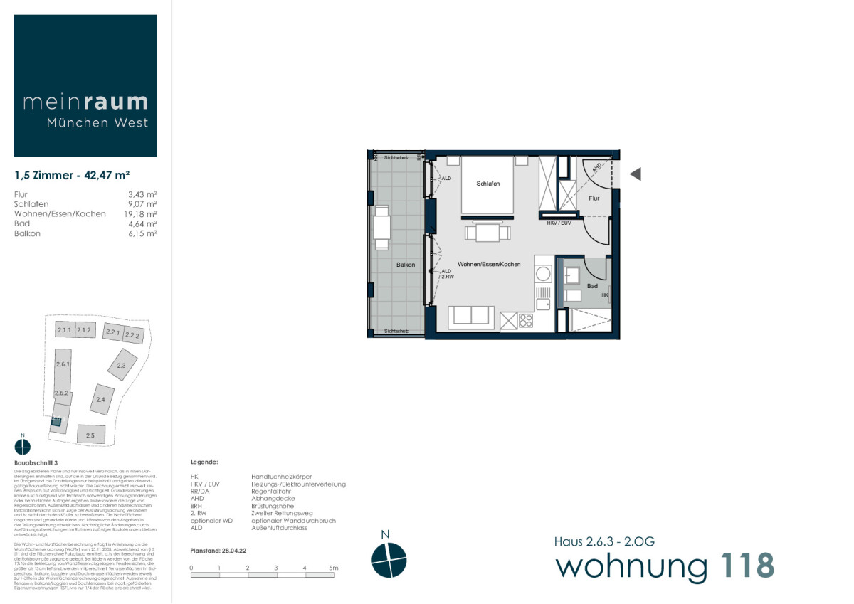 Die moderne 1,5-Zimmer-Wohnung zum Erstbezug im 2. OG einer stilvollen Wohnanlage wird Sie begeistern. Intelligent geschnitten, bietet sie auch mit 42,47m² Wohnfläche viel Gestaltungsfreiraum. Auf dem gemütlichen Balkon können Sie Ihre Ruhe-Oase gestalten und den Feierabend geniessen. Großformatige Feinsteinzeug-Fliesen in den Bädern, edle Landhaus-Dielen in Eiche in sämtlichen Wohnräumen, elektrische Rollläden, Fußbodenheizung, barrierefreie Zugänge und Tiefgaragenstellplätze mit optionaler E-Ladestation sind nur einige der Vorzüge für den hochwertigen Wohnraum, den Sie in dieser neuen Eigentumswohnung vorfinden. Ergänzt wird der hohe Wohnkomfort mit einer ausgezeichneten Infrastruktur für Alltag und Freizeit inmitten des modernen, urbanen Flairs des aufstrebenden Stadtteils im Münchener Westen.