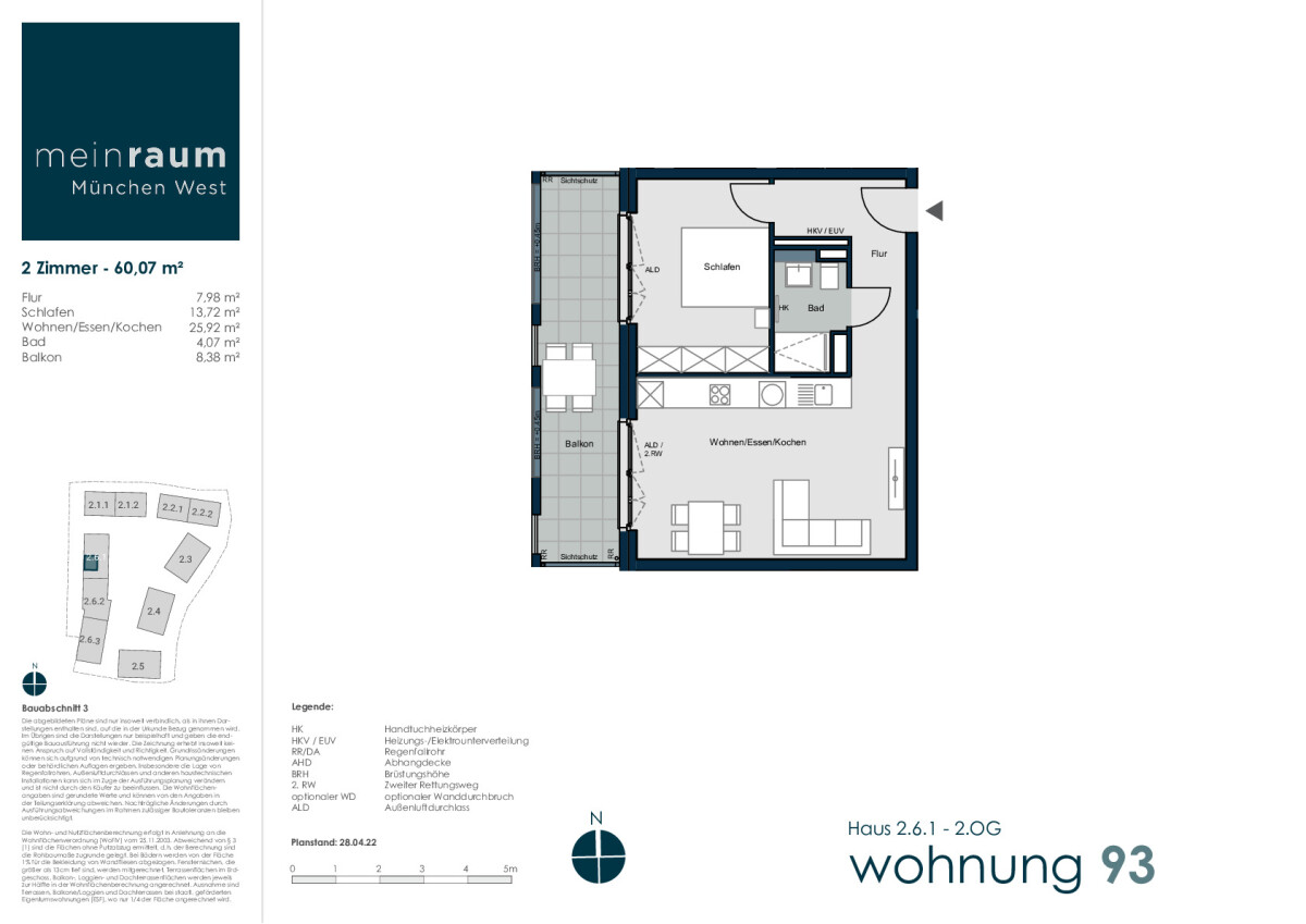 Diese moderne 2-Zimmer-Wohnung zum Erstbezug befindet sich im 2. OG einer neuen, attraktiven Wohnanlage. In diesem schönen Objekt erwartet Sie 60,07m² modernster Wohnkomfort. Auf dem gemütlichen Balkon können Sie Ihre Ruhe-Oase gestalten und den Feierabend geniessen. Großformatige Feinsteinzeug-Fliesen in den Bädern, edle Landhaus-Dielen in Eiche in sämtlichen Wohnräumen, elektrische Rollläden, Fußbodenheizung, barrierefreie Zugänge und Tiefgaragenstellplätze mit optionaler E-Ladestation sind nur einige der Vorzüge für den hochwertigen Wohnraum, den Sie in dieser neuen Eigentumswohnung vorfinden. Ergänzt wird der hohe Wohnkomfort mit einer ausgezeichneten Infrastruktur für Alltag und Freizeit inmitten des modernen, urbanen Flairs des aufstrebenden Stadtteils im Münchener Westen.