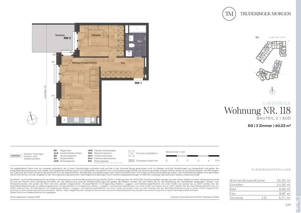 Die helle 2-Zimmer-Wohnung mit eigener Terrasse im Erdgeschoss des Truderinger Morgen wird Sie begeistern und eignet sich sehr gut als Kapitalanlage. Intelligent geschnitten, bietet sie mit ca. 60,03 m² Wohnfläche viel Gestaltungsfreiraum. Für gemütliche Stunden im Freien lädt die schöne Terrasse zum Verweilen ein. Im Flur besteht die Möglichkeit eines großen Einbauschranks oder einer großzügigen Garderobe. Das Badezimmer verfügt über eine Badewanne, einen Waschmaschinenanschluss sowie einen Handtuchheizkörper. Große Fliesen im Bad, edles Echtholz-Parkett, elektrische Rollläden, Fußbodenheizung, barrierefreie Zugänge und Tiefgaragenstellplätze mit optionaler E-Ladestation sind nur einige der Vorzüge für den hochwertigen Wohnraum, den Sie in dieser neuen Eigentumswohnung vorfinden. Ergänzt wird der hohe Wohnkomfort mit einer ausgezeichneten Infrastruktur für Alltag und Freizeit inmitten des aufstrebenden, urbanen Flairs des Münchner Ostens.