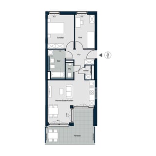 Sinnvoll aufgeteilte 3-Zimmer-Wohnung mit Terrasse