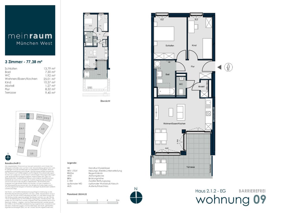 Sie suchen eine Eigentumswohnung im aufstrebenden Stadtteil des Münchner Westen? Möchten Sie ein urbanes Zuhause finden, von dem aus Sie dennoch kurze Wege zu den umliegenden Naherholungsgebieten haben? Dann haben wir das passene Zuhause für Sie. Diese sinnvoll aufgeteilte 3-Zimmer-Wohnung mit Terrasse befindet sich im Erdgeschoss einer neuen, attraktiven Wohnanlage. In diesem schönen Objekt erwartet Sie 77,38m² modernster Wohnkomfort. Ausgestattet mit einem Tiefgaragenstellplatz inkl. E-Ladestation, grossformatigen Feinsteinzeug-Fliesen und Markenarmaturen, bietet diese Egeintumswohnung hochwertiger Wohnkomfort. Im Aussenbereich lädt die schöne Terrasse zum Verweilen ein.