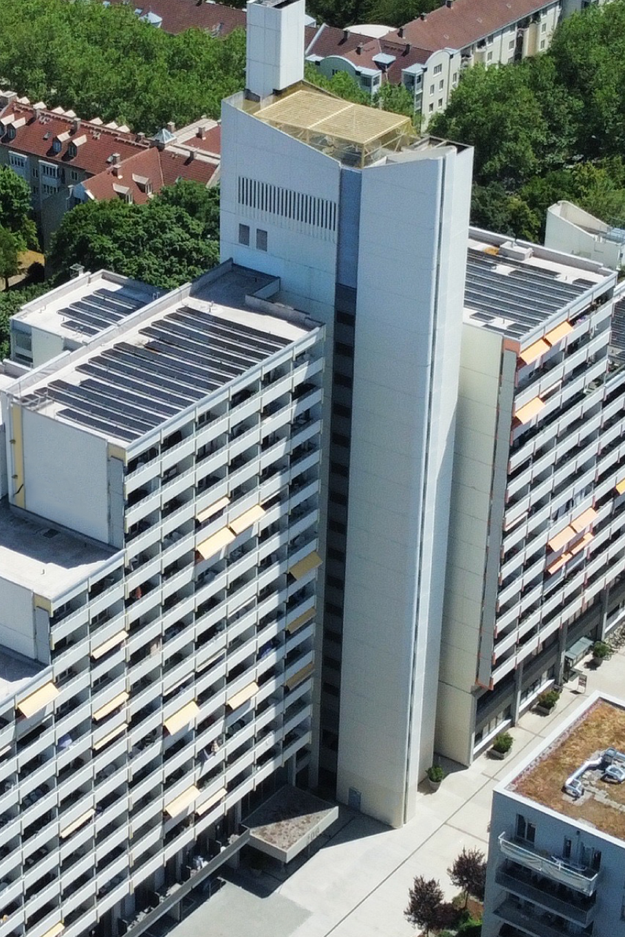 406 Wohnungen verteilen sich auf 15 Etagen und gehören zur Münchner Adresse Leopoldstraße 206, neben dem Schwabinger Tor und auf Höhe des Schwabinger Krankenhauses. Die Leo206 ist eine Architektur-Ikone aus den 1970er Jahren, die gleichzeitig aktuelle Wohnstandards erfüllt.